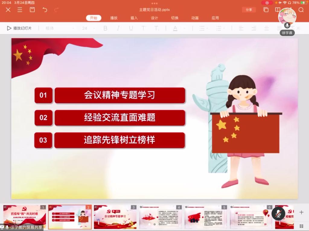 会议最后,支部组织委员陈晓妹同志作为本次参与学校抗疫的志愿者,组织大家观看了成人在线