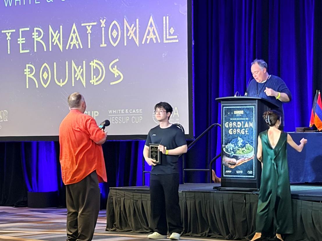 2026年3月28日至4月4日,第六十七届“杰赛普(JESSUP)国际法模拟法庭竞赛”国际赛在华盛顿举行。全球共有164支队伍参与此次赛事,我院代表队在四场竞赛中三胜一负,最终排名第60名。2022级本科生李恩宇摘得韦德·普拉卡什·南达奖(Ved P. Nanda Award),跻身全球前50最佳辩手。