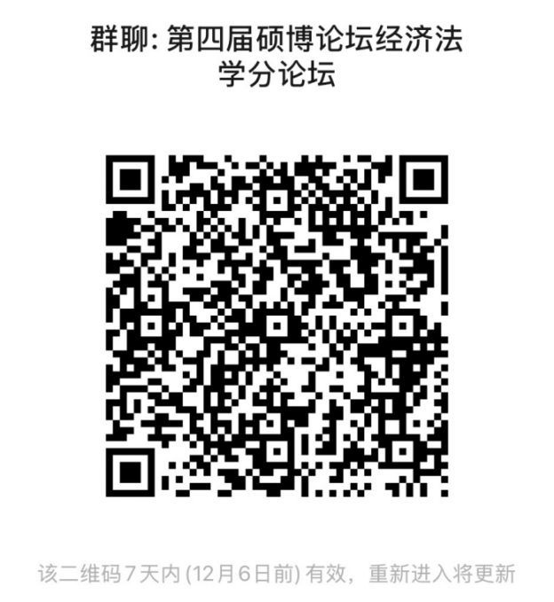 经济法学方向博士研究生、法学硕士生,以及由经济法学方向导师指导的法律硕士生(具体分组名单见附件1)。请各位同学及时扫码入群(入群后请在“我在本群的昵称”中写明“博士/学硕/法本法硕/非法本法硕+姓名”,如:博士张三)。