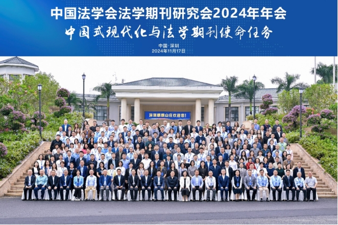 承办,中国知网、北大法宝协办的中国法学会法学期刊研究会2024年学术年会在广东省深圳市隆重举行。本次大会的主题是“中国式现代化与法学期刊使命任务”。中国法学会法学期刊研究会会员、理事、编辑和学者代表等260余人参加会议。中国法学会党组成员、学术委员会主任、《法制与社会发展》主编、中国法学会法学期刊研究会会长张文显教授,《法制与社会发展》副主编、编辑部主任苗炎副教授、副主编侯学宾教授,《当代法学》主编、法学期刊研究会副会长李建华教授、编辑刘红臻教授、编辑部副主任龚浩川副编审等多位教师参加会议。