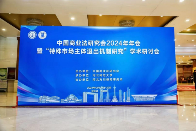 2024年12月20日—21日,我院于莹教授、傅穹教授、王艳梅教授、胡晓静教授以及两位博士研究生陶飞、任猛前往河北石家庄参加中国商业法研究会2024年年会—暨“特殊市场主体退出机制研究”学术研讨会,共同参与、探讨关于该主题的最新理论与实务问题。本次论坛由中国商业法研究会主办、河北师范大学法政与公共管理学院承办。来自立法机关、审判机关、检察机关、群团组织、律师事务所等单位和高校科研院所的300余名代表参加了本次年会。