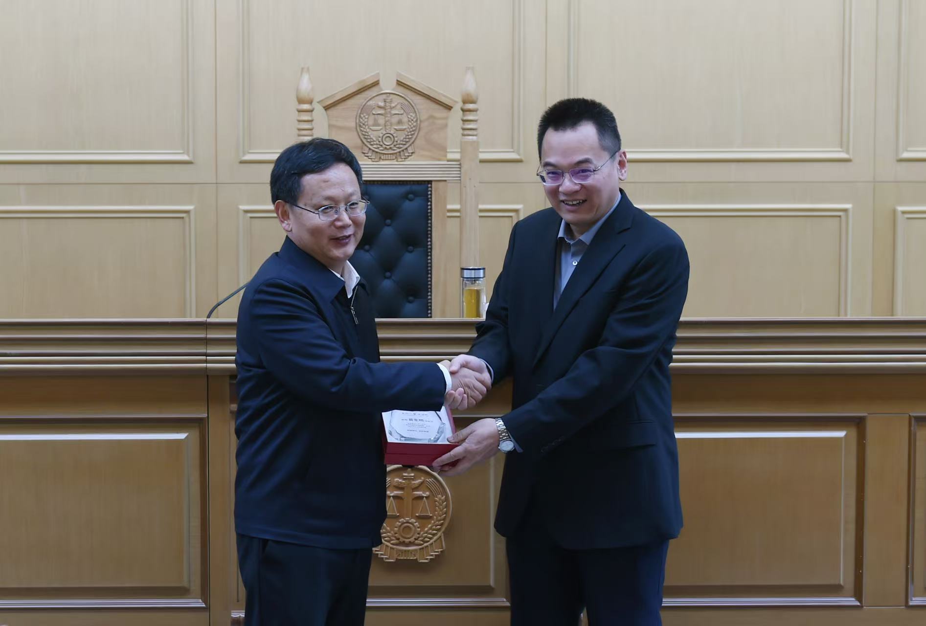 吉林大学党委副书记、组织部部长姚毓春为苗生明副检察长颁发授课纪念牌