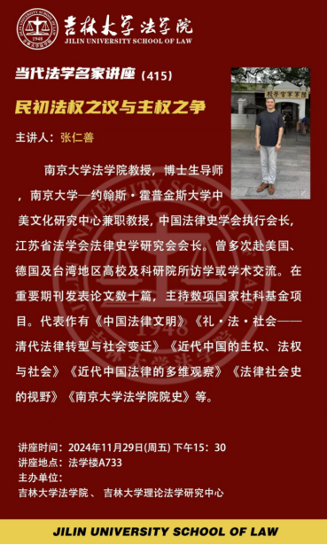 教授,博士生导师,南京大学一约翰斯·霍普金斯大学中美文化研究中心兼职教授,中国法律史学会执行会长,江苏省法学会法律史学研究会会长。曾多次赴美国、德国及台湾地区高校及科研院所访学或学术交流。在重要期刊发表论文数十篇,主持数项国家社科基金项目。代表作有《中国法律文明》《礼·法·社会——清代法律转型与社会变迁》《近代中国的主权、法权与社会》《近代中国法律的多维观察》《法律社会史的视野》《南京大学成人在线