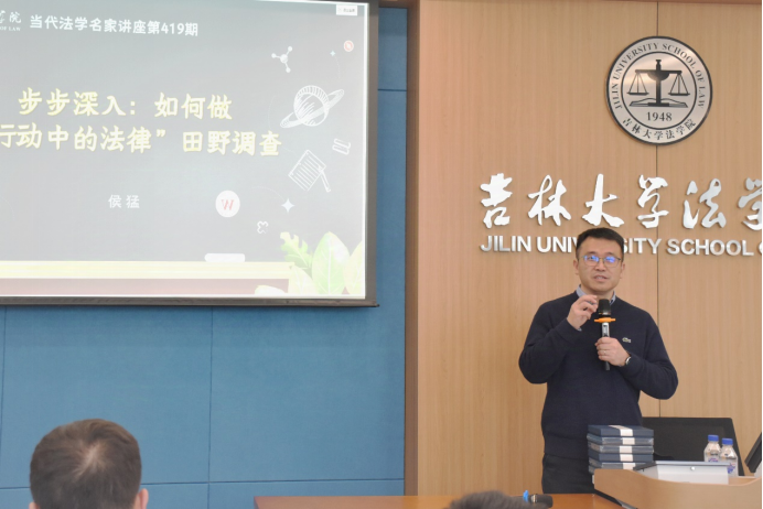 侯猛教授在吉林大学中心校区法学楼A723教室进行了讲座,主题为“步步深入:如何做‘行动中的法律’田野调查”。侯学宾教授作为主持人,对侯猛教授的研究方向和学术成果进行了简单介绍,并对侯猛教授的到来表示欢迎。侯猛教授指出,做“行动中的法律”田野调查有三个步骤,分别是描述现象、解释原因和提炼概念,其中“提炼概念”非常重要,却很容易被忽略。侯猛教授认为,田野调查需要从微观见中观,将经验一般化,从经验中提炼概念。这就需要在调研期间集中讨论,在调研结束后及时撰写摘要。在提问互动环节中,几位同学针对该主题表达了自己的想法,并就相关学术问题与侯猛教授进行了讨论。侯猛教授在回答问题的同时,向提问的同学分别赠送了纪念品。最后,侯学宾教授对本次讲座进行了总结。