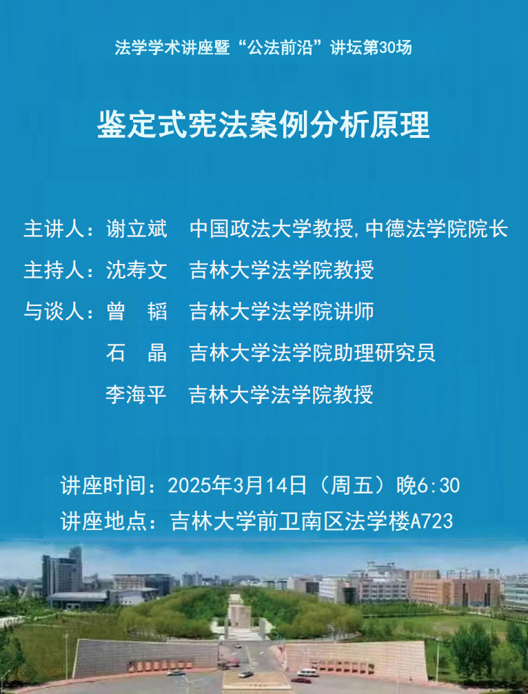 上一篇:法学学术讲座暨“公法前沿”讲坛第29场:法学论文写作与时间管理 下一篇:日本辩护士(律师)联合会佐藤克哉律师做客我院“海(境)外学者讲座”