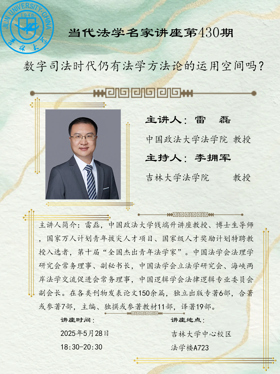 --友情链接-- 吉林大学 理论法学研究中心 吉林大学司法数据应用研究中心 吉林大学人权研究中心 司法文明协同创新中心 当代法学 吉林大学农业农村法治研究院 --数据库资源-- LexisNexis数据库 北大法宝 威科先行法律信息库 聚法案例