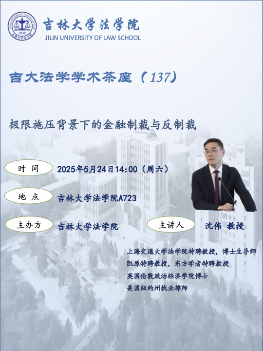 上一篇:吉大法学学术茶座(138):国际法中的“双标”问题 下一篇:陈建霖教授做客我院海外名家讲座