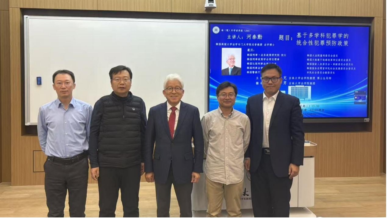 2025年11月25日14点,吉林大学海(境)外学者讲座第256期在吉林大学中心校区法学楼B405教室举行。韩国高丽大学法学专门大学院名誉教授、前韩国刑事·法务政策研究院院长河泰勳应邀做客我院海(境)外学者讲座,讲座主题为“基于多学科犯罪学的统合性犯罪预防政策”。本次讲座由成人在线