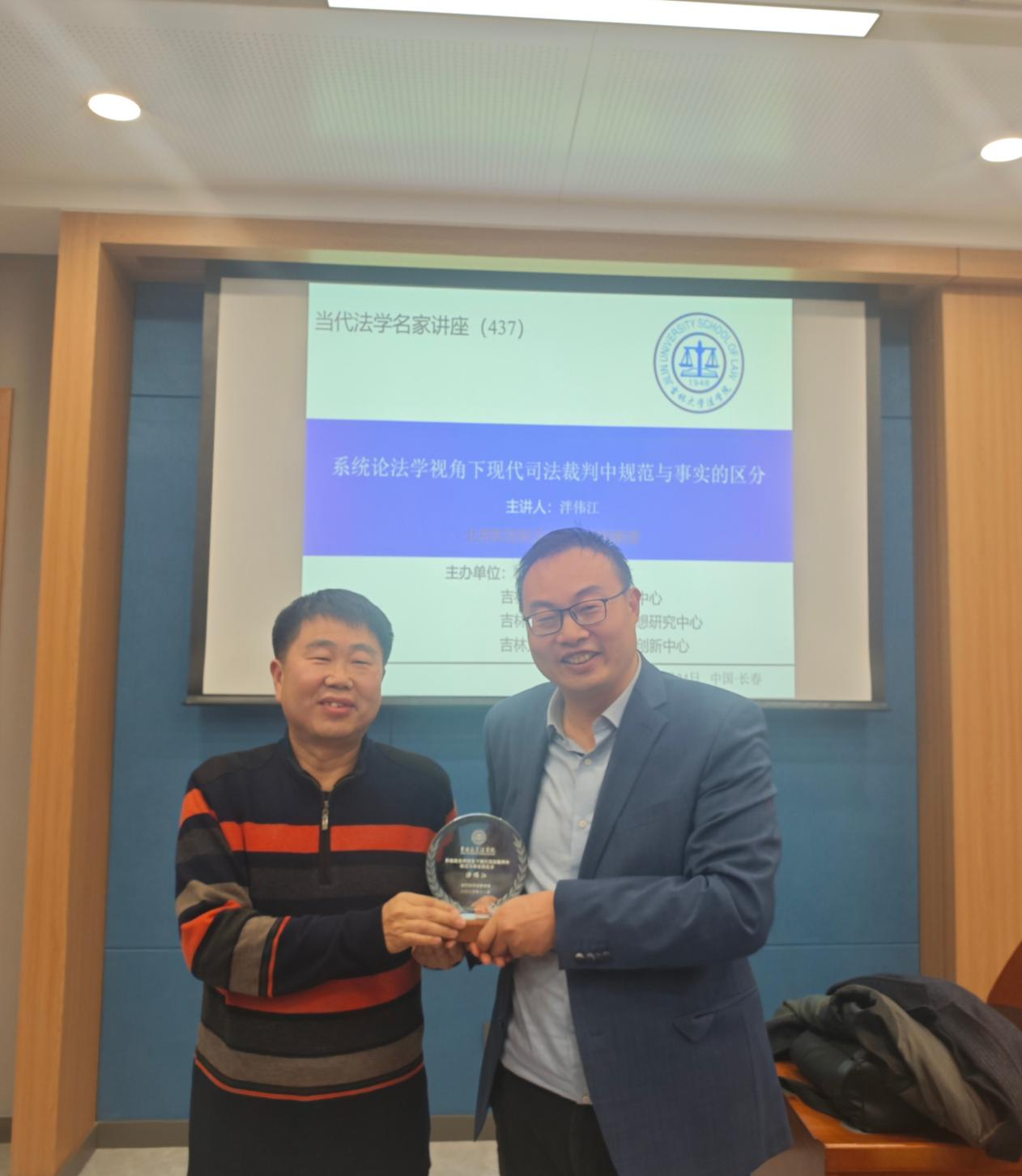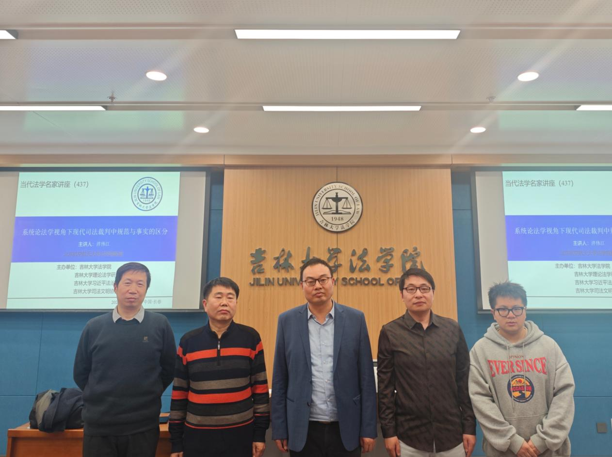 2025年11月24日,北京航空航天大学泮伟江教授在吉林大学法学楼A723教室进行了讲座,主题为“系统论法学视角下现代司法裁判中规范与事实的区分”。李拥军教授作为主持人,对泮伟江教授的研究方向、学术成果进行了简单介绍,并对泮伟江教授的到来表示欢迎。泮伟江教授从司法裁判理论中的经典论题“规范与事实的区分”出发,试图通过系统论的角度拓展学界对于这一经典命题的理解,并且进一步阐释系统论法学“运作上封闭,认知上开放”的核心论述。泮伟江教授首先指出了既有关于“事实与规范区分”的不同理论取向,法教义学主张严格区分事实与规范,但是这种严格区分的立场也遭到了社科法学的挑战。泮伟江教授赞同事实与规范二分的立场,并且提出系统论法学可以进一步深化对于事实与规范二分的论证。泮伟江教授阐述了康德哲学以及当代心理学中的“图式”概念,认为“图式”规定了我们对于世界的认识。系统论法学将法律系统看作运作封闭、认知开放的自创生系统,把规范与事实的区分界定为法律系统内部的认知图式。该图示通过执行依托法律规范的自我指涉与依托案件事实的外部指涉来协调法律系统与环境关系,以实现法律系统稳定和保障社会一般性规范性预期的核心功能。在提问环节,几位同学针对该主题表达了自己的想法,与泮伟江教授就相关问题进行了讨论。最后,李拥军教授对本次讲座进行了总结。